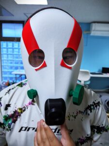 ハロウィンのためにつくったお面。とあるアニメの主人公が被っているガスマスクです。
