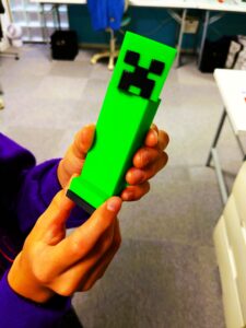 マイクラのキャラクターのモデリング 投稿日 2025年11月19日 投稿者 豊中こどもプログラミング教室 Senaさんの作品です。 TinkerCADでマイクラのキャラクターをつくりました。 首が動くところがポイント!! とても良い出来栄えで、いまにも爆発しそう…💥💨